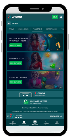 لزيارة 22casino، يجب أن يكون عمرك على الأقل 18، كما ينص عليه القانون في الولايات المتحدة الأمريكية وشروط 22casino