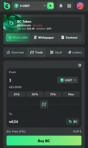 3) في المحفظة، ابحث عن علامة التبويب تداول.==]هنا، يمكنك التحقق من العملات الرقمية المتاحة وأسعار صرفها للشراء.