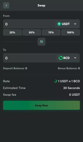 5) إذا قررت أثناء اللعبة تبديل العملات الرقمية=يمكنك دائمًا تبديلها. للقيام بذلك، انتقل إلى حسابك واختر قسم ”المبادلة“. هناك، اختر المبلغ الذي تريد استبداله والعملة التي ترغب في الحصول عليها.